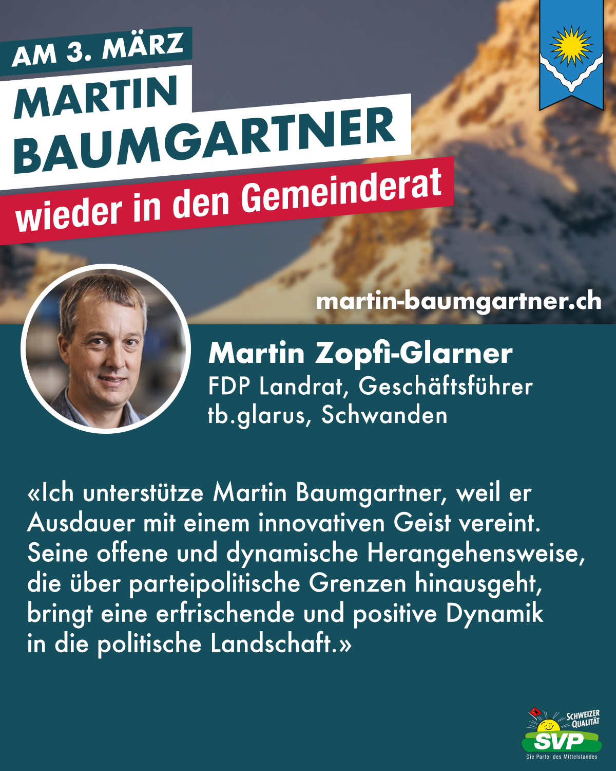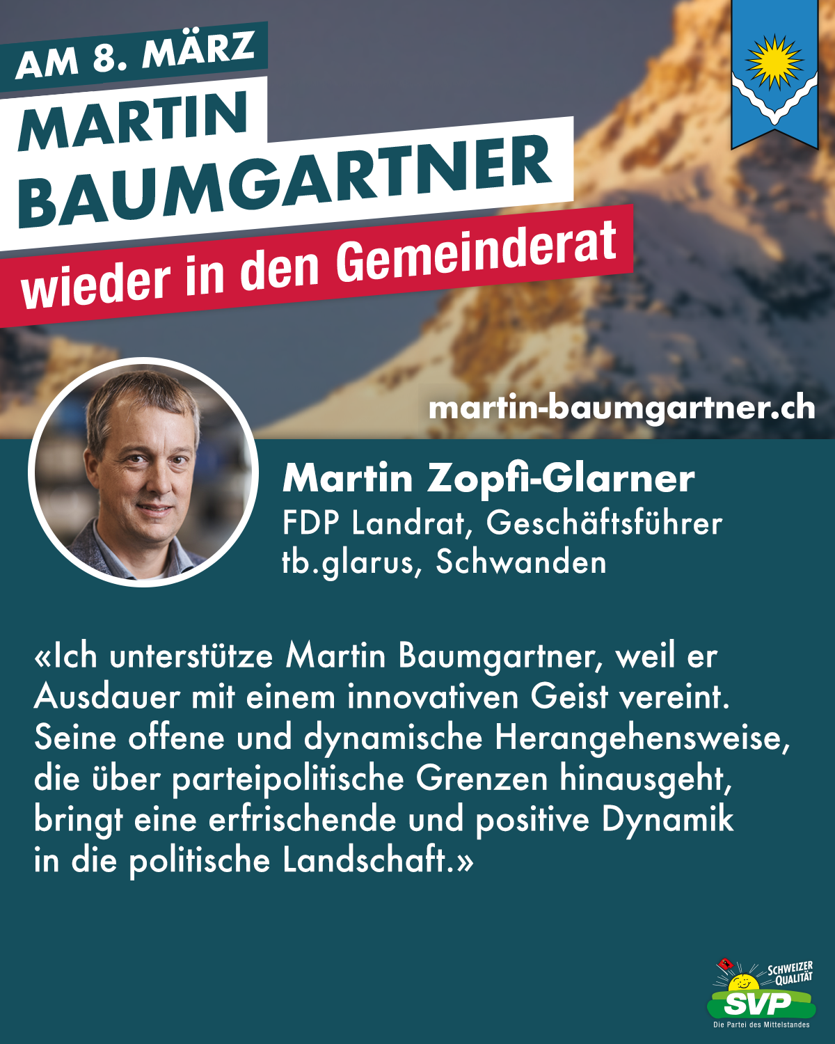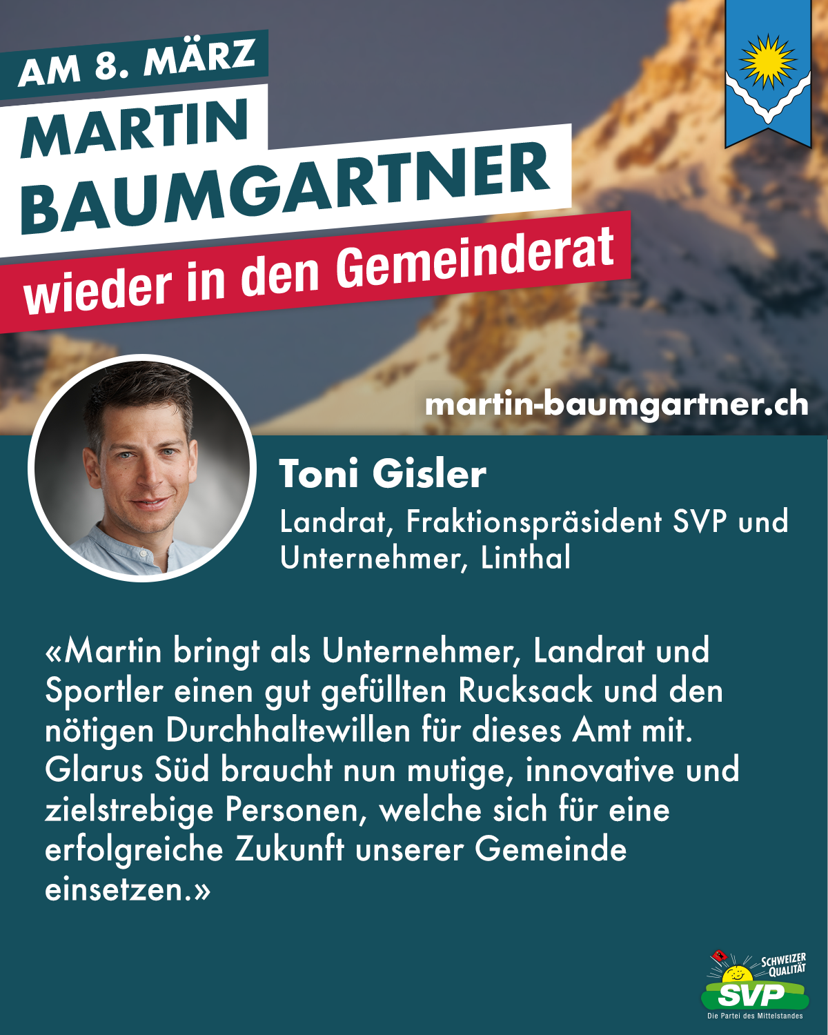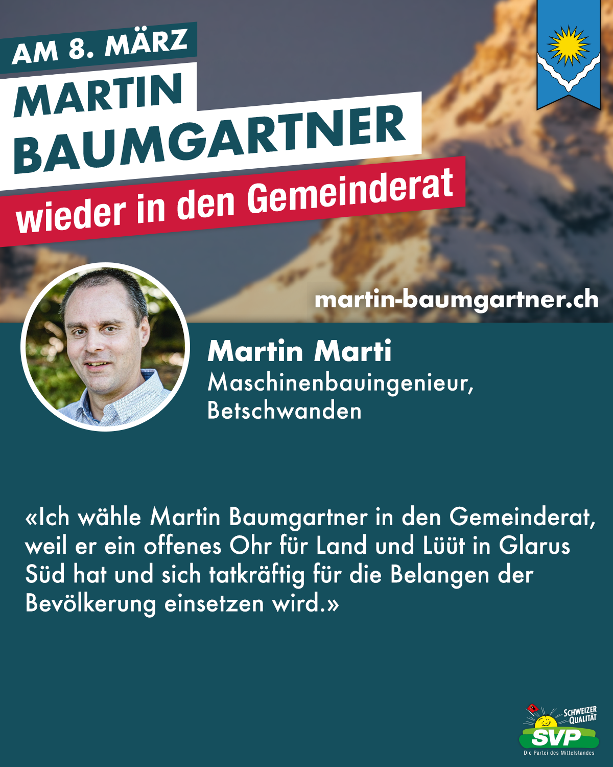 - Martin Baumgartner, Gemeinderat Glarus Süd