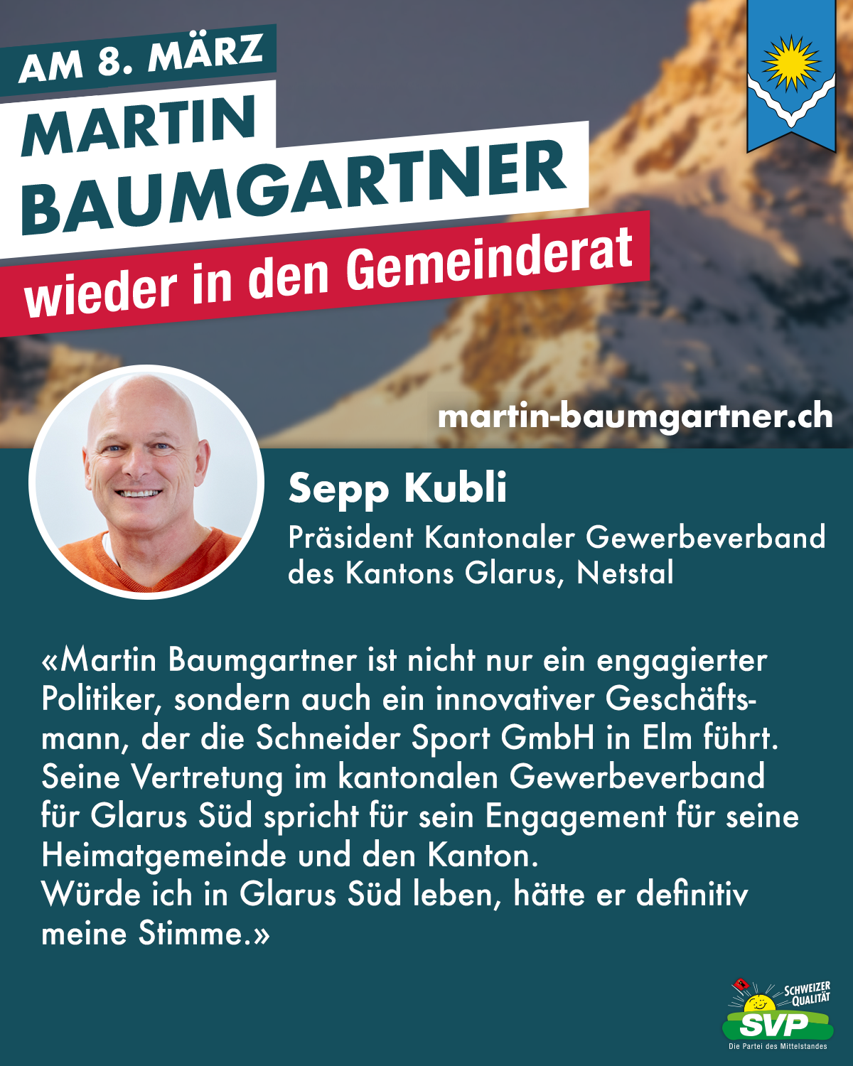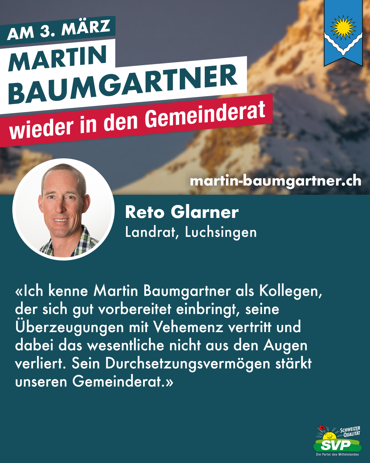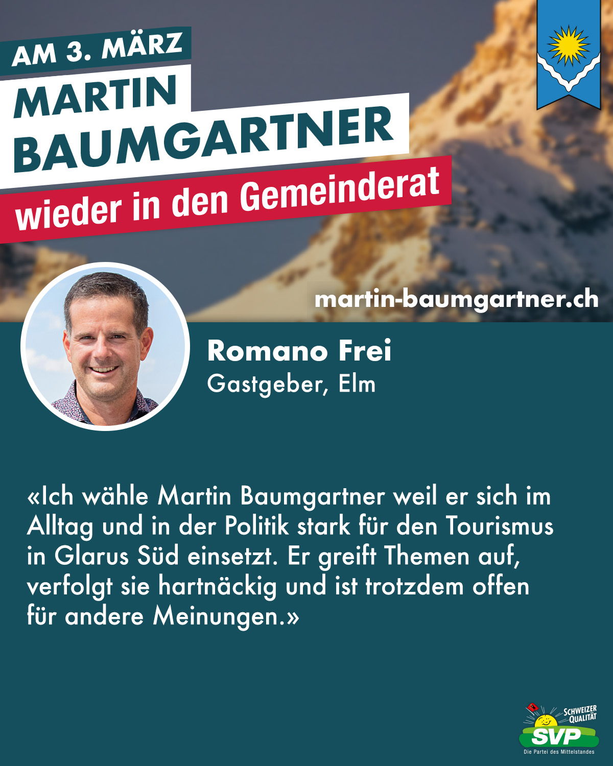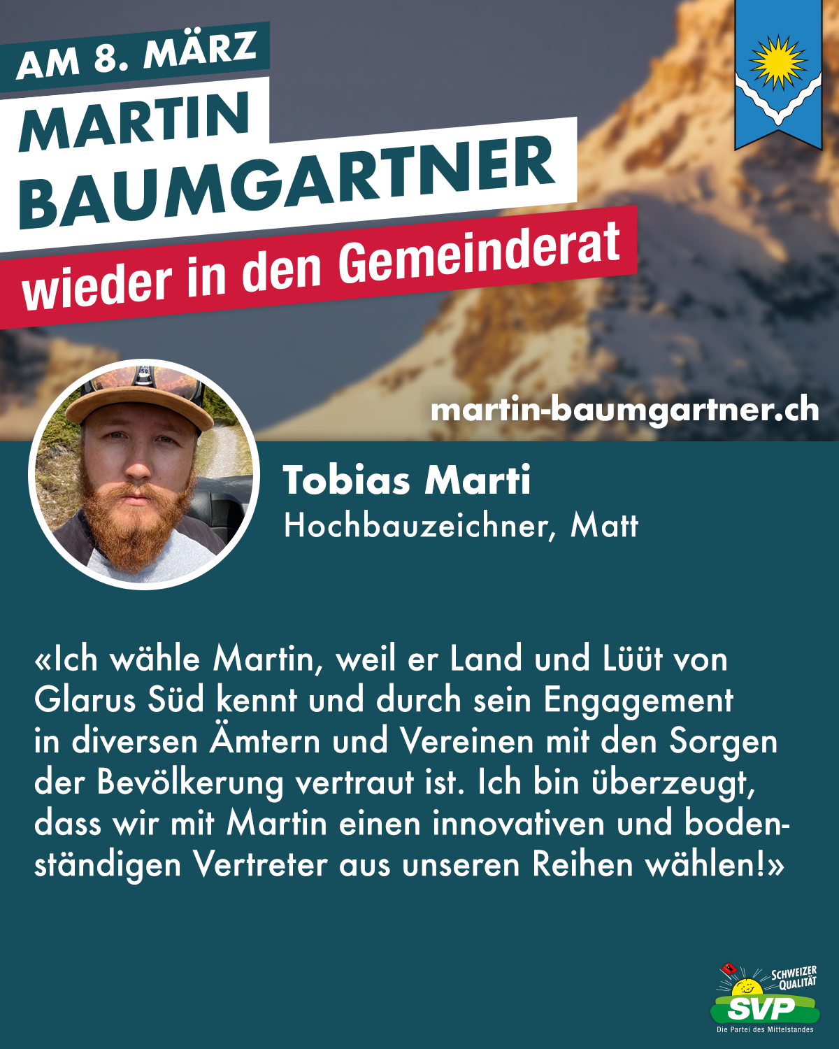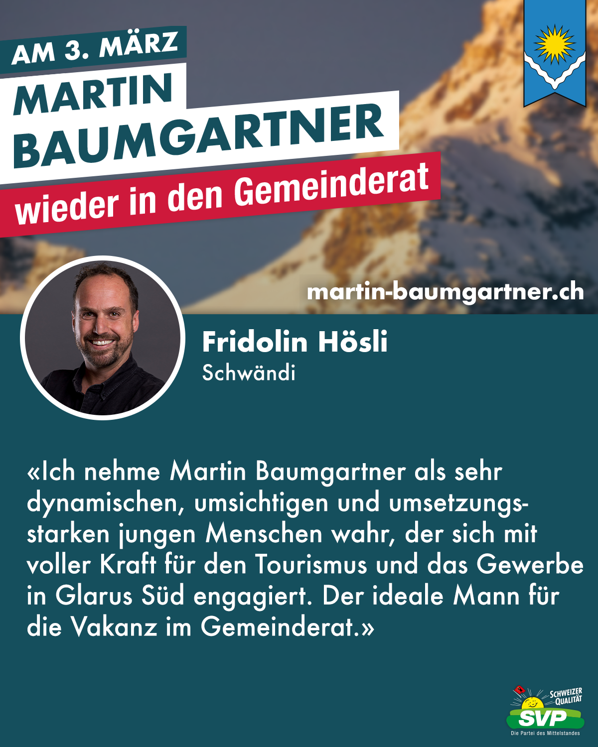 - Martin Baumgartner, Gemeinderat Glarus Süd
