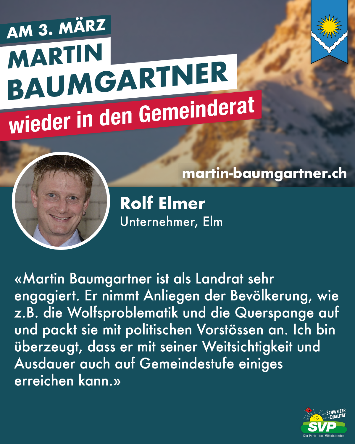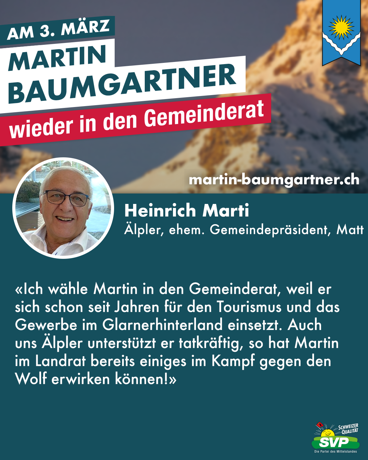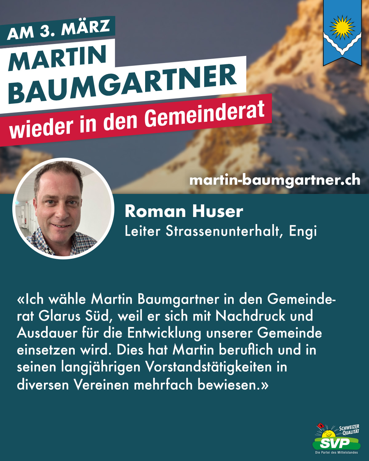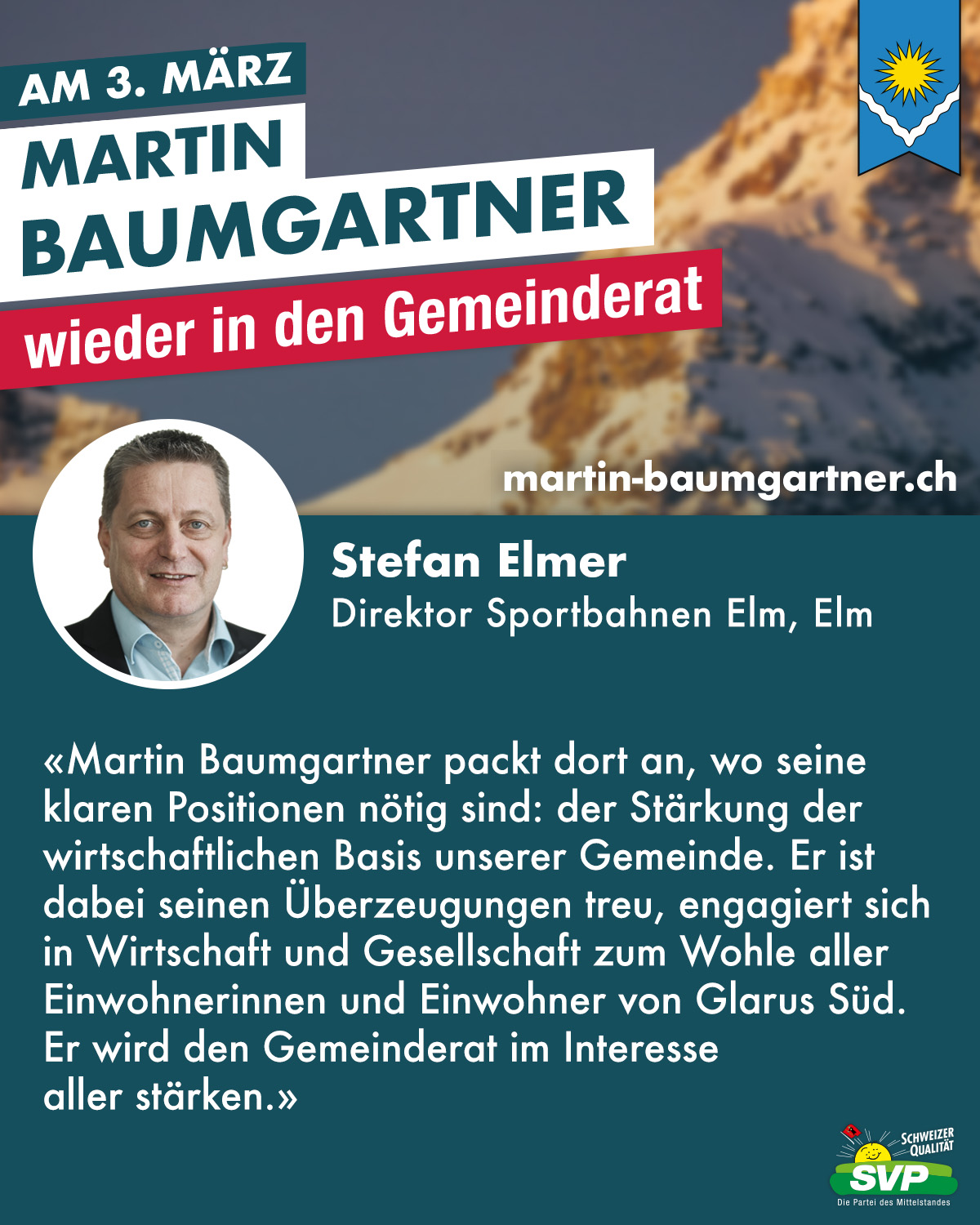 - Martin Baumgartner, Gemeinderat Glarus Süd