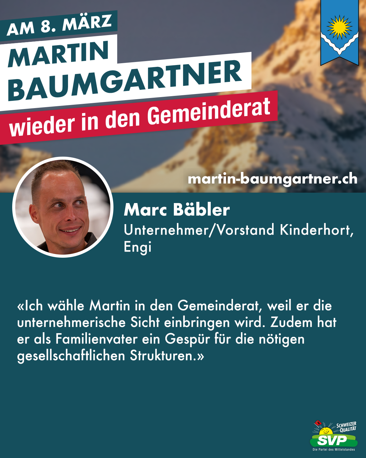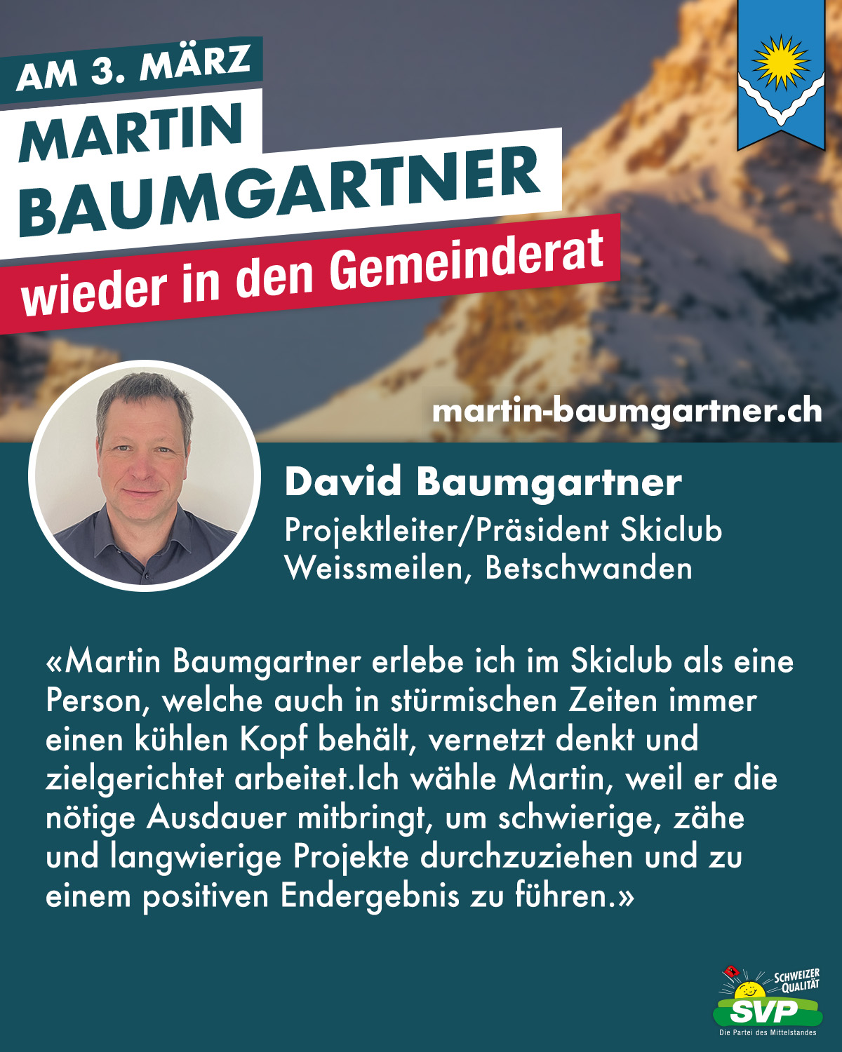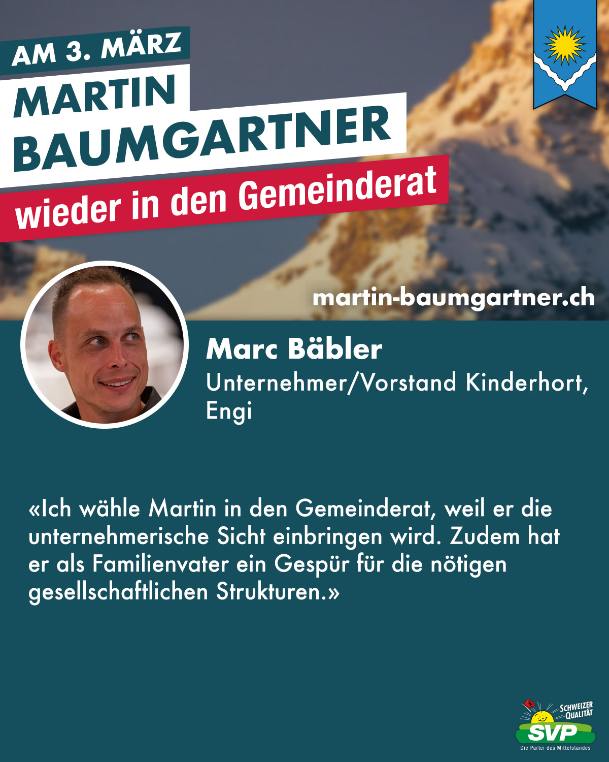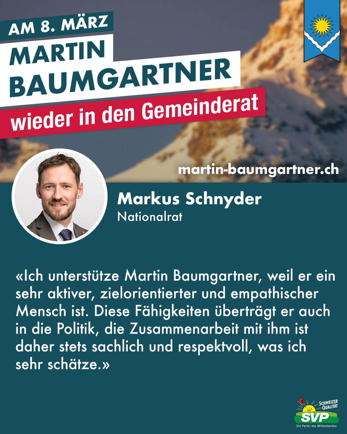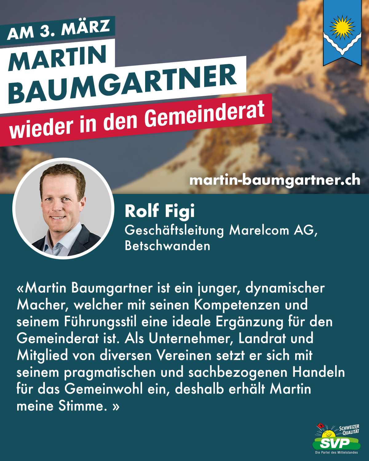 - Martin Baumgartner, Gemeinderat Glarus Süd
