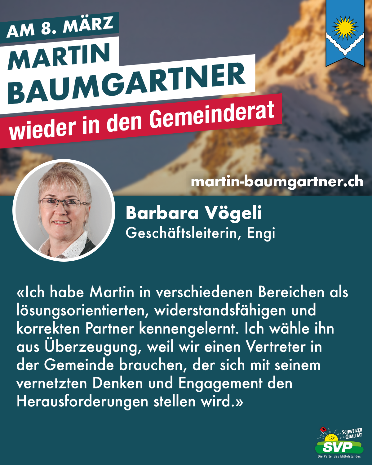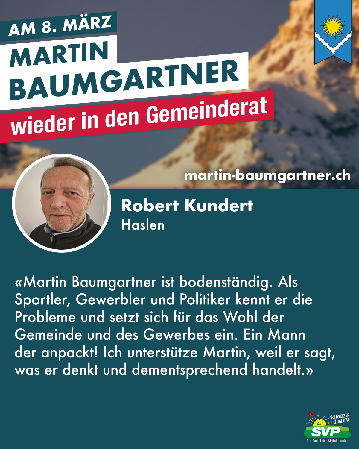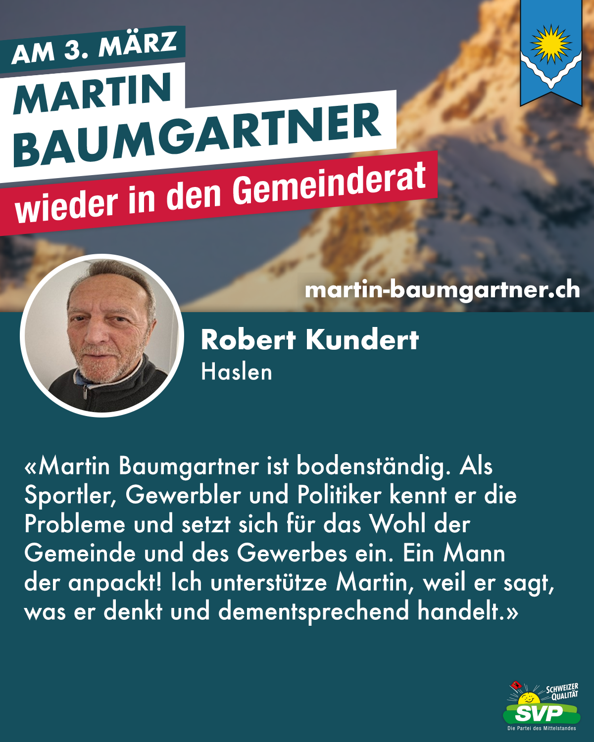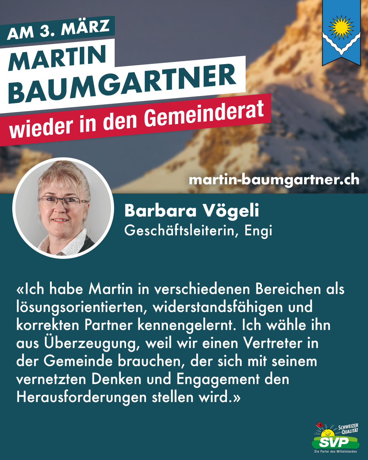 - Martin Baumgartner, Gemeinderat Glarus Süd